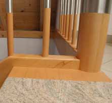 Massivholztreppe mit Zwischenpodesten Ausführung · 2 x 1/4 gewendelt komplett in Buche · flächenbündig eingelassene Graniteinlagen · Geländer Holz/Edelstahl kombiniert